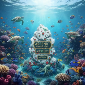 Arsenic (As³⁺/As⁵⁺): Arsenic, the silent killer, is permanently neutralized by Albanian Minerals’ green olivine technology. Through molecular transformations Mg₂SiO₄ + 2CO₂ + H₂O → 2MgCO₃ + H₄SiO₄ and AsO₄³⁻/AsO₃³⁻ → Mg₃(AsO₄)₂ toxic arsenic is captured in inert mineral lattices, while CO₂ is sequestered, soil fertility restored, acidity balanced, and ecosystems regenerated. Olivine becomes a microscopic alchemist, turning poison into permanence, pollution into stone, and environmental despair into planetary renewal.